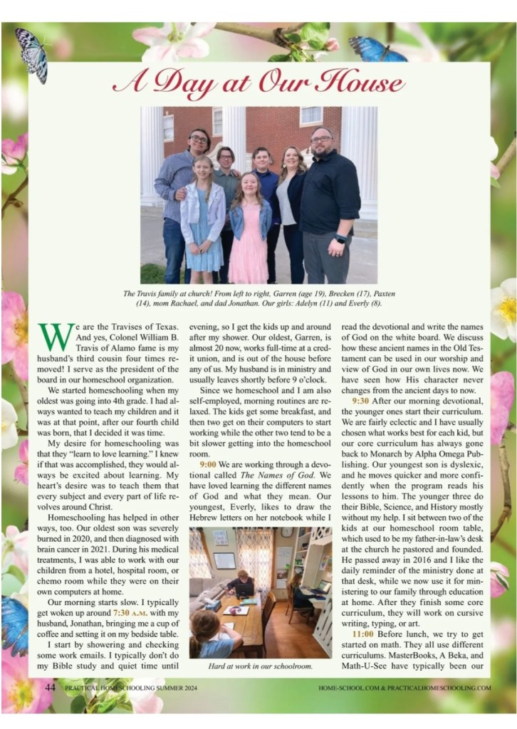 *Our Day in the Life featured in the Practical Homeschooling Magazine Issue #158 in May 2024.